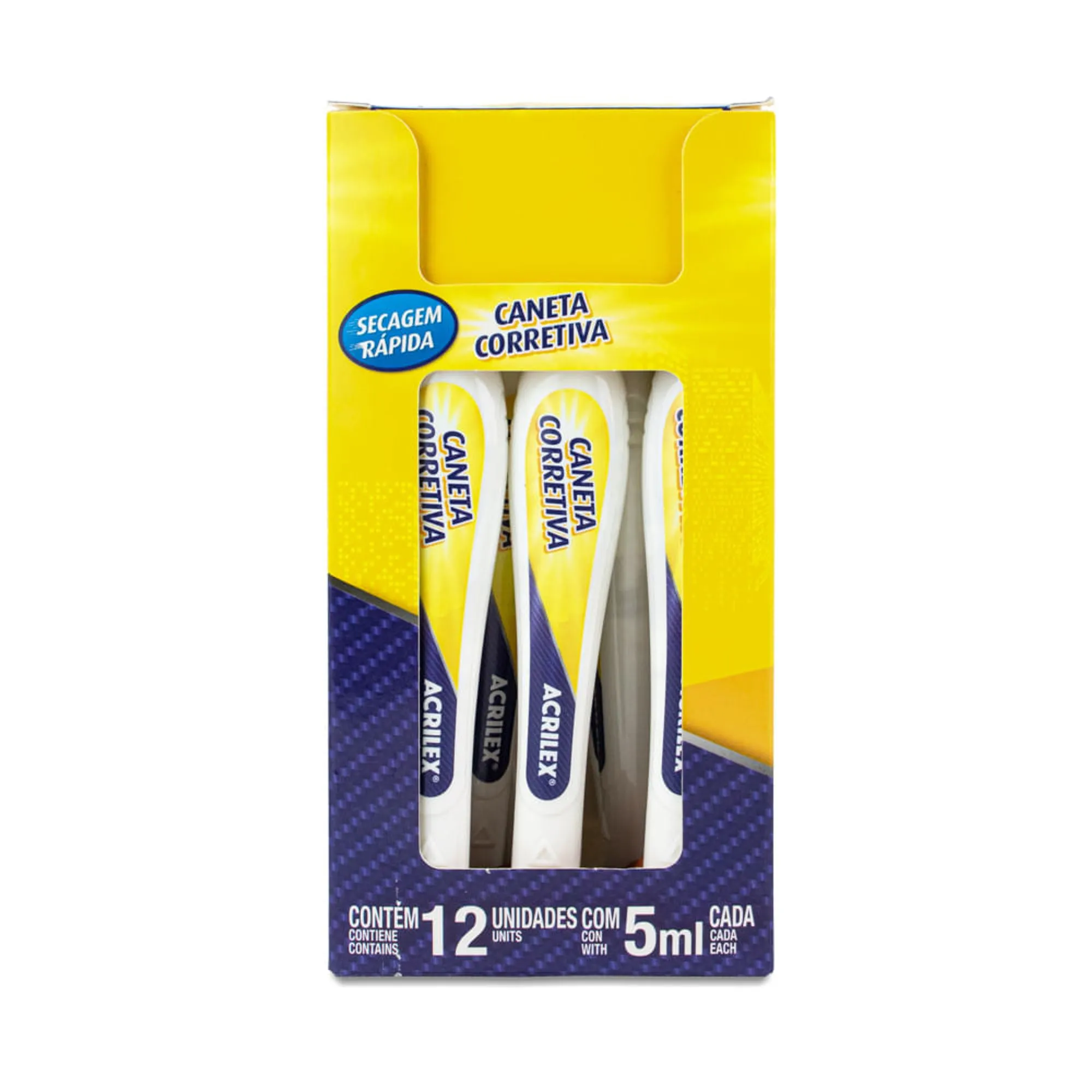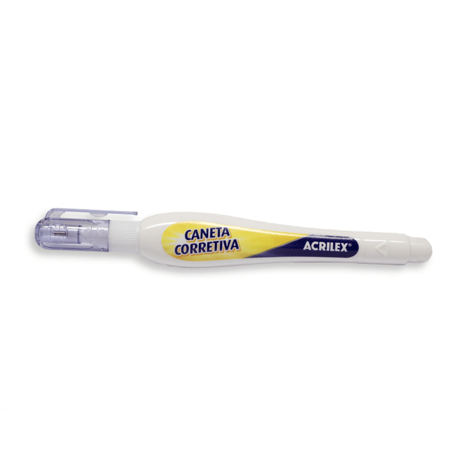 Caneta Corretiva com 05ml de tinta com ponta de metal que serve para corrigir escritas em geral, fotocópias e traços de canetas esferográficas, feito a base água e não tóxico.
